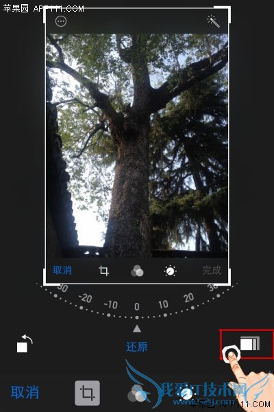 第一步,在照片“编辑”页面,点击“裁剪”按钮,即可进入裁剪编辑页面。