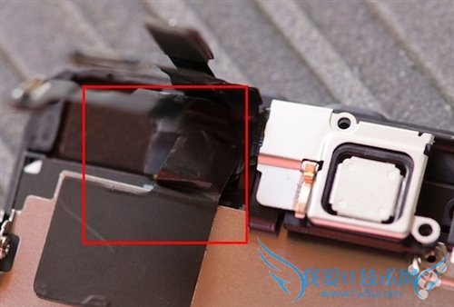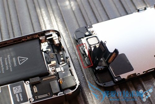 5,听筒下面,轻轻用撬刀把屏幕前右边的电线撬松,但别太用力,也不要伤害下面的电线,因为那是接近传感器。