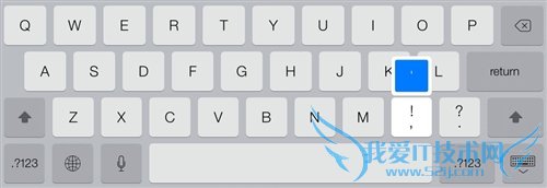 2.上下双引号的添加 这个“点击-滑动”机制贯穿整个iOS7系统之中,而不仅仅是URL的输入。输入下双引号也可以使用同样的操作方法。长按句号键,即可调出下双引号。而长按shift 逗号键即可调出上双引号。