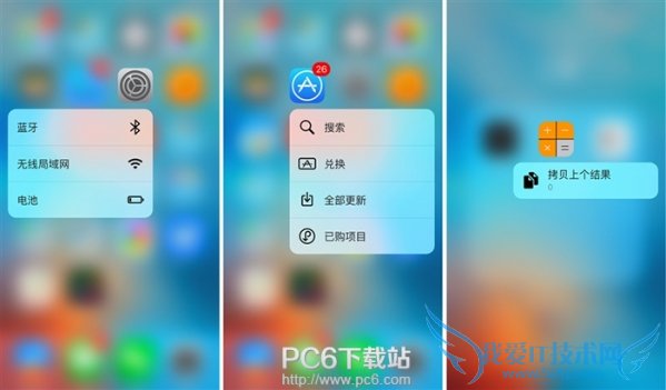iOS 9.3中有更多的原生应用加入了3D Touch功能,除健康外,设置、AppStore、计算器都加入了3D Touch,比如设置可以快速进入电池、WiFi设置,计算器加入了拷贝上个结果,还算蛮实用。