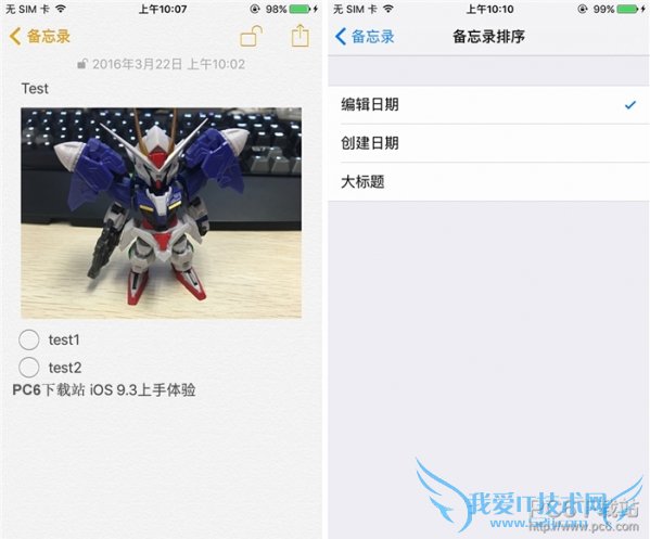 备忘录还加入了列表清单模式,单击底部的【对号】标志即可添加列表。此外还可以加入了可以根据编辑日期、创建日期、大标题排序的功能。