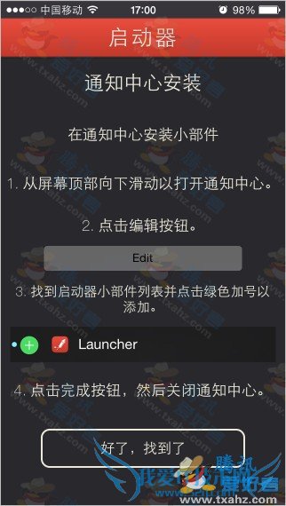 3、设置完 Launcher 后,需要在下拉通知中心“编辑” - 添加 Launcher。