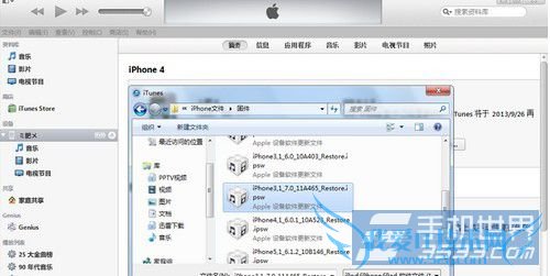 4、iTunes会弹出对话窗--请选择已经使用PP助手(Win)下载固件--点击更新--等待iTunes运行;