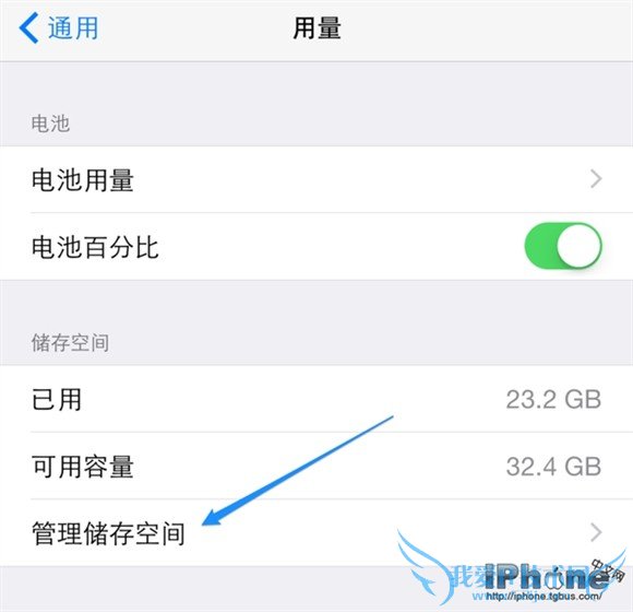 4、随后在用量列表里找到“管理存储空间”一栏,点击进入。