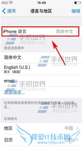 2)点击【iPhone语言】进入,将iPhone语言改成【英文】,然后再改回来即可。(如下图)