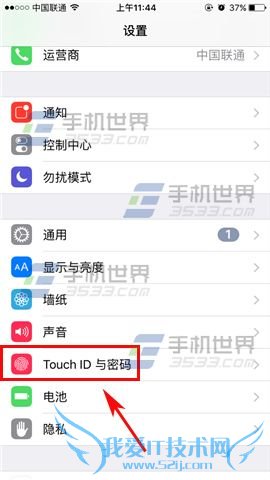 1)首先我们先打开【设置】,然后找到【Touch ID与密码】,输入密码后点击右上角的【完成】。(如下图)