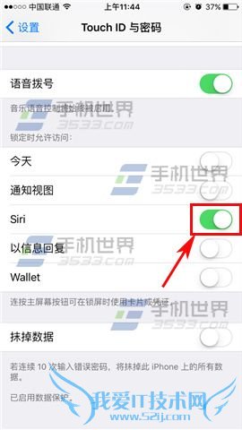 2)最后我们再把【Siri】那栏右边的椭圆往左拉关闭就可以了。(如下图)