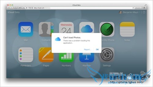 上图来自苹果某支持页面,其中我们可以看到Photos应用,目前在公共网站中无法看到该应用。该应用的图标与iOS的相同,但是不清楚其功能。如果尝试访问beta.iCloud.com/photos,用户会收到下面的错误信息。