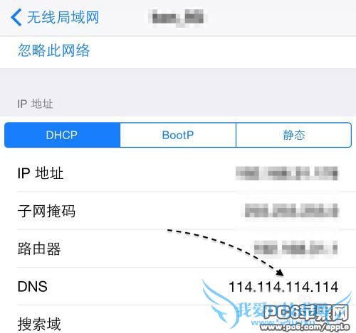 随后在无线网络详情列表里,找到 DNS 一栏,删除原来的地址,把 114.114.114.114 填上去。