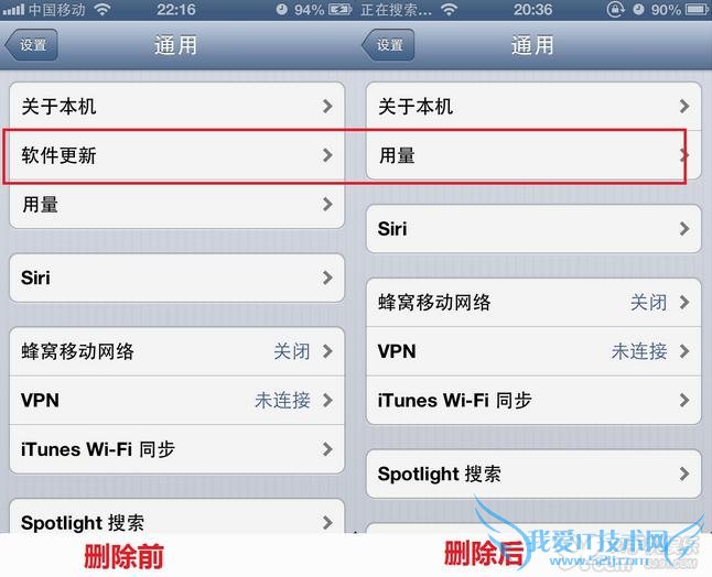 用ifile打开Applications/Preferences.app目录下的General.plist 文件,来去掉设置-通用中的软件更新项目。操作前最好使用91助手等文件管理工具在电脑上备份下General.plist 文件,以防误删文件中其它代码字段后便于恢复。