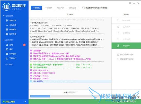 3、请确保iPhone没有激活锁,或者知道ID锁帐号、密码,否则刷机后可能导致无法激活。