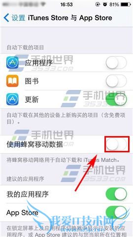 ¡¡¡¡µã»÷ÉèÖýøÈ룬ȻºóµãÑ¡¡¾App StoreÓëiTunes Store¡¿Ò»À¸£¬½øÈëºó¹Ø±Õ¡¾Ê¹Ó÷äÎÑÒÆ¶¯Êý¾Ý¡¿Óұ߻¬¿é¼´¿É¡£(ÈçÏÂͼ)