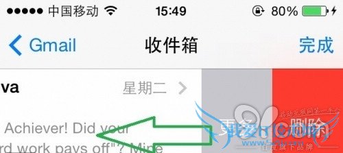 iOS 7中的消息和邮件功能也增加了一些手势功能,比如在消息阅读界面中,只需从左侧向右滑动,便会回到列表界面,无需点击上面的“信息”按键。