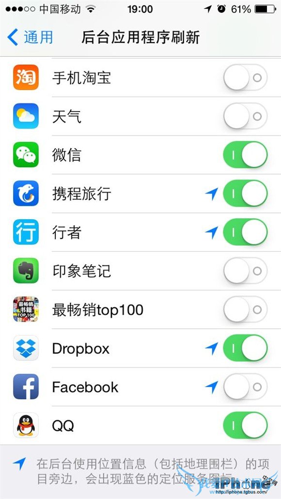 在这里,你可以将自己需要后台联网实时更新数据的软件应用打开,而其他不需要后台刷新的软件应用就可以不打开了。