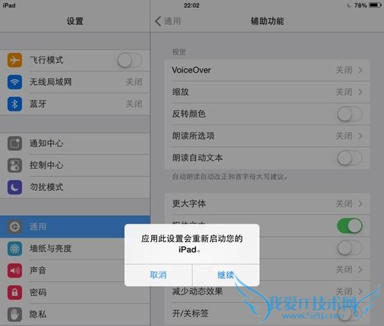 第四步,点击“继续”重启设备后,即可成功启用粗字体。