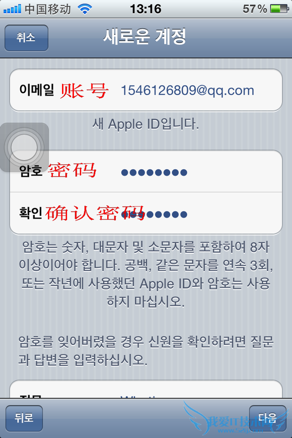 账号就是以后你登陆韩国APP的账号了,密码当然也是你登陆APP的密码,不用和你的QQ一样