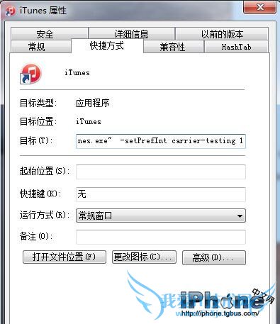比如我安装在C盘更改后为 "C:Program FilesiTunesiTunes.exe" -setPrefInt carrier-testing 1