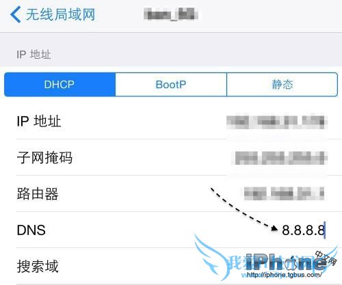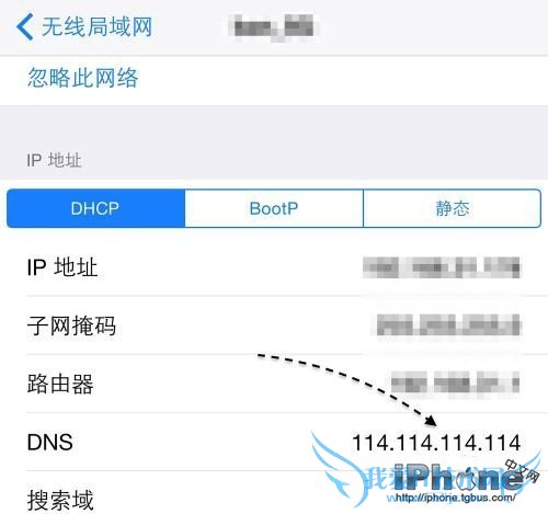 5、如果iPhone6 AppStore打开空白,可能是遇到苹果服务器“间歇性抽风”,建议可将DNS更改成114.114.114.114或者8.8.8.8,即可解决问题。具体操作如下: