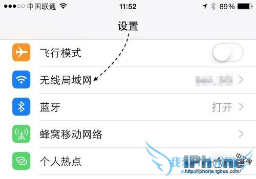 - 在设置列表点击“无线局域网”一栏,如下图所示;