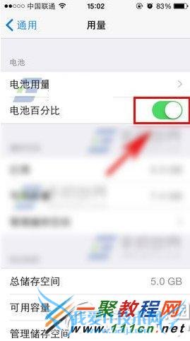 2、待大家进入到【用量】界面后就能看到【电池百分比】开关键了,点击开启即可。