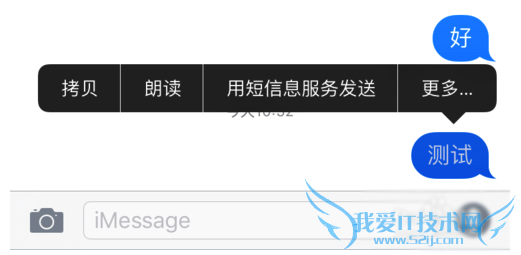 8、此外在发送 iMessage 信息时,也可以通过长按正在发送的信息,选择【用短信息服务发送】选项来切换。