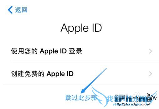 接着会询问我们是否要用 Apple ID 账号来登录,如果有的话,可以在这里直接登录。如果没有的话,请点击“路过此步骤”选项,激活成功以后也是可以登录的,所以不必担心。