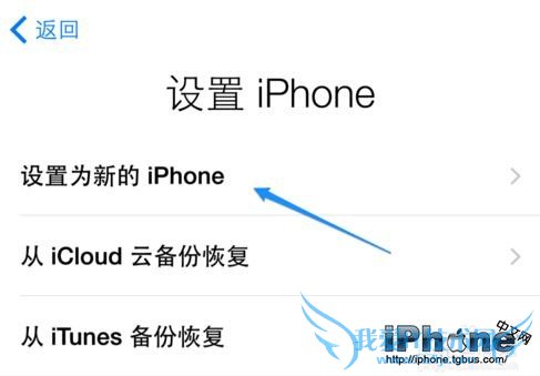 随后可以选择从备份中恢复(主要是针对之前也是使用过苹果手机的用户),一般情况下,我们选择“设置为新的 iPhone”选项,如图所示;