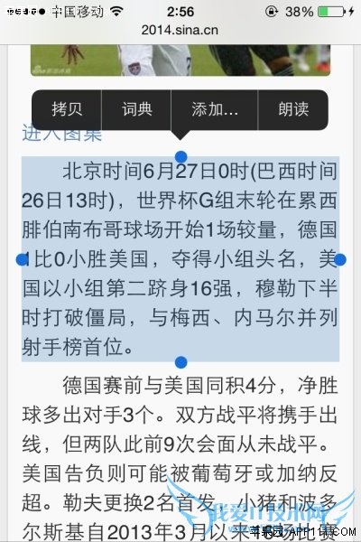 经过以上设置,iPhone就可以自动朗读所选的文字了。在需要朗读时,先选择一段文字,然后点击显示的功能选项中的“朗读”按钮,即可开始朗读了。