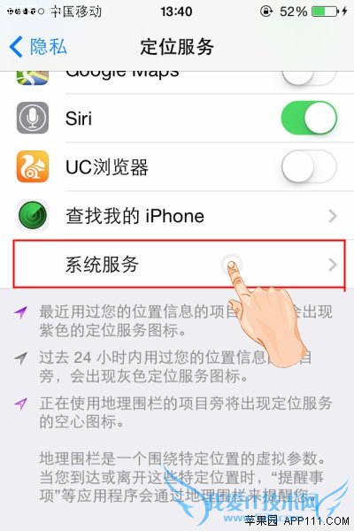 iPhone具有定位服务功能,可以让用户了解自己处于什么位置,了解所处位置的天气预报等相关服务,不过还有一些基于位置的广告、交通数据更新、时区等却不是很必要,关闭这些服务的具体方法如下: