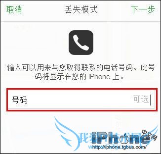 5、然后提示输入用于与你联系的备用电话号码,这里如果顺手输错成丢的那个手机号可以取消“丢失模式”重新输入。
