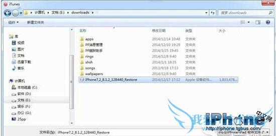 2、 将iPhone iPad iTouch 连接电脑打开iTunes。按住键盘上Shift(上档键)+鼠标左键点击iTunes 的更新 恢复功能。