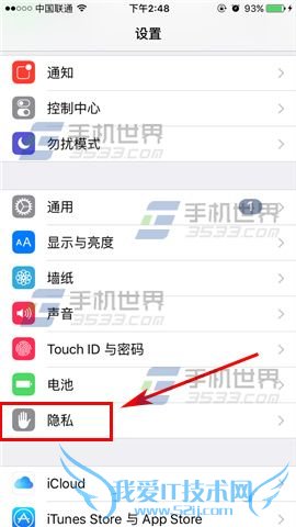 1)首先我们先打开【设置】,然后找到【隐私】。(如下图)