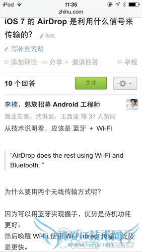 在官方的说明文件里,我们可以发现AirDrop是通过蓝牙与wifi来进行传输。其中,蓝牙“握手”,wifi“传输”。整个传输过程,并不需要网络连接的参与。也就是说,即便你的iOS设备处于网络离线状态,依旧能通过AirDrop进行文件传输。