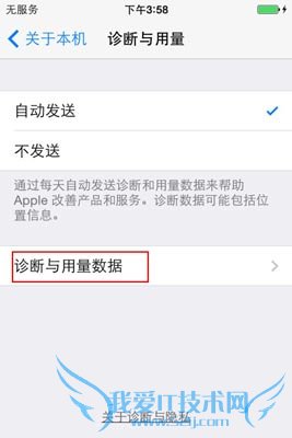 3、点击【诊断与用量】,再点击【诊断与用量数据】