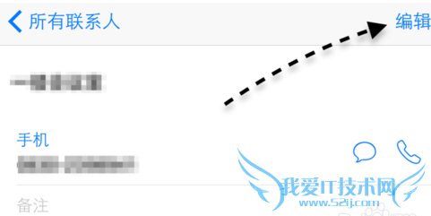 3、随后我们打开 iPhone 上的通讯录,找到想要为他设置小头像的联系人,在详细信息界面里请点击右上角的“编辑”按键,如图所示
