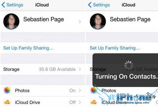如果 iCloud 下方「通讯录」选项开关已经打开,但你的联系人却没有显示在 iPhone 上,此时你需要先将该选项开关关闭,然后再打开。