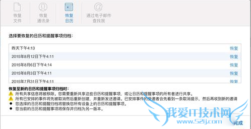 6、当然如果你想要恢复 iCloud 中的其它内容,如日历或文件之类的,也是可以的,如图所示