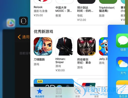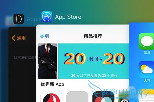 2、接下来就可以看到后台多任务管理了,与之前的 iOS7 和 iOS8 不同的是,应用程序的图标从底部调整到了顶部。当然也可以通过左右滑动来查看在后台中不同的应用程序。