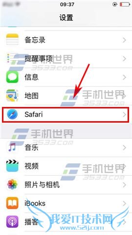 1)在待机界面点击【设置】,进入后选择【Safari】一栏。(如下图)