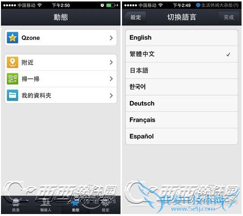 而iOS版本的QQ国际版,在界面上并没有QQ 2013版的花哨,而是延续了实用的风格。不过QQ国际版里的内置语言为繁体字体,所以国内的用户使用起来还需要适应。