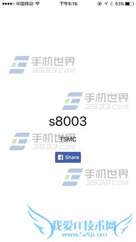 4)完成上面的操作,应用就可以打开了,打开后就可以看到你的iPhone6S的处理器是哪家代工的,比如小编的这部,显示【S8003 TSMC】,证明就是台积电代工的处理器。(如下图)