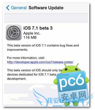 对于开发者用户,则可以通过OTA在线升级,另外对于非开发者用户,可以通过注册开发者,然通过OTA升级,也可以到苹果开发者中心网站下载ios7.1 beta3固件,然后刷固件升级。
