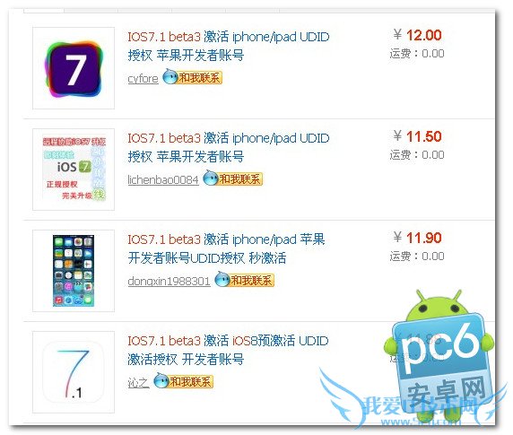 如果您不会开发者用户,无法直接OTA升级ios7.1 beta3,并且不想通过刷机升级的话,建议大家在淘宝买个ios7开发者账户,关联一下即可,升级为开发者账号后,后期有测试版新系统都可以直接更新。另外一般购买开发者账户价格不贵,10~20元左右就可以买到,如下图所示: