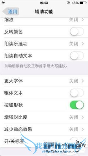 如果你不喜欢iOS 7的赤裸按钮,如果你很难发现在导航栏的操作按钮,如果你渴望iOS 6风格的开关按钮,那么你会很高兴的发现iOS 7.1会满足你的期望,没错,就是隐藏在辅助功能内的按钮形状。