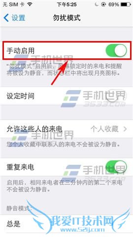 1)首先打开iPhone5界面点击设置,然后在点击【勿扰模式】,再点击【手动启用】开启;(如下图)