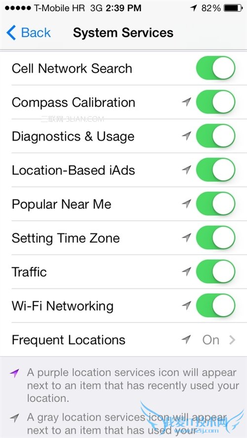 去设置-隐私-定位服务,再进入子菜单“系统服务”,6个服务中有些可以提高你的体验,有些既要你的隐私又要你的电池寿命,禁用你不需要的选项,比如“基于位置的iAd广告”, 还有“常去地点”也关掉。
