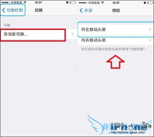 3、最后我们可以设置需要摇头控制的功能即可,这里主要可以实现将摇头动作设定为回到主页、启动Siri、通知中心、应用切换、音量控制等等,以下以设置遥控控制相机设置为例,如下图所示: