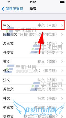 4)我们要选择朗读的语言,要使用语音朗读的时候,长按字体,然后选中要朗读的文字,点击【朗读】即可。(如下图)