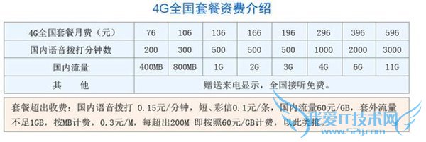 从整体来看,这四种套餐都分为76元、106元、136元、166元、196元、296元、396元、596元八个档位,而这本身就是联通4G全国套餐资费,各档位套餐细节如下图: