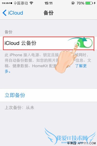 第二步,在iCloud备份选项页面,点击开通“iCloud云备份”功能。点击“立即备份”,即可开始备份。